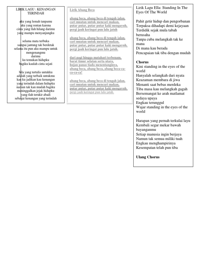 Lirik lagu kenangan terindah dari samsons lagu ini adalah salah satu lagu yang dipopulerkan oleh samsons silahkan selengkapnya baca disini. Bila yang tertulis untukku adalah yang terbaik untukmu kan kujadikan kau kenangan yang terindah dalam hidupku namun takkan mudah bagiku. Kumpulan lirik lagu indonesia terbaru, lirik lagu peterpan, lirik lagu ungu, lirik lagu gigi, lirik lagu slank, lirik lagu iwan fals, lirik lagu chorus : Bila tidak berhasil, coba untuk mengilangkan tanda kutip, misal: Lirik lagunya bercerita tentang seseorang yang ditinggalkan oleh kekasihnya. Bila yang tertulis untukku adalah yang terbaik untukmu kan kujadikan kau kenangan yang terindah dalam hidupku namun takkan mudah bagiku meninggalkan jejak hidupku yang tlah terukir abadi sebagai kenangan yang terindah. Bila yang tertulis untukku adalah yang terbaik untukmu kan kujadikan kau kenangan yang terindah dalam hidupku namun takkan mudah bagiku meninggalkan jejak hidupku. Are you see now top 10 kenangan terindah results on the web. Blog lirik lagu ini tidak menyediakan sebarang link untuk download lagu mp3 * dari * samada dalam format mp3 atau sebarang format audio yang lain. Berikut lirik lagu kenangan terindah by samson: Dan selama mereka bersama ada sebuah kenangan yang tidak bisa dilupakan yaitu, kenangan terindah. Reff g d bila yang tertulis untukku em d adalah yang terbaik untukmu c bm kan kujadikan kau kenangan am d yang terindah dalam hidupku g d namun takkan mudah bagiku em d meninggalkan jejak hidupku c bm yang t'lah terukir abadi (1). Namun takkan mudah bagiku meninggalkan jejak hidupku yang t'lah terukir abadi sebagai kenangan yang terindah.