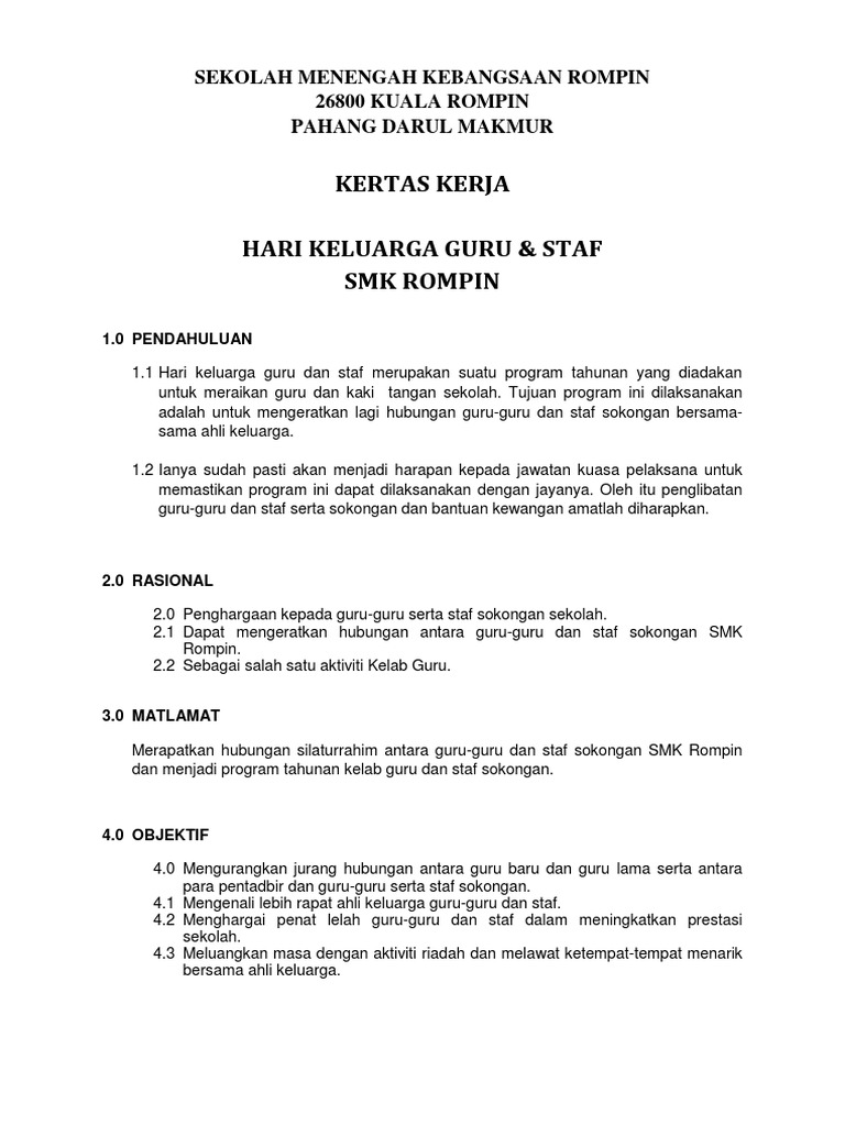 Kertas Kerja Hari Keluarga Universiti Nbsp Jk Teks Ucapan Buku Program Dr Ramzah Dambul Perasmian En Baszley Bee B Basrah Bee Jk Persiapan Pentas Khemah En Lee Kuok from demo.vdocuments.mx Untuk membuat sesuatu projek hari keluarga, pastinya anda perlu terlebih dahulu membuat kertas kerja hari keluarga syarikat. For more information and source, see on this link : 23 februari 2012 hari : Tn haji ahmad haji salleh. Kertas kerja mesra belia bersama ahli parlimen anjuran jawatankuasa persatuan penduduk jalan suria bandar mahkota,banting dengan kerjasama penggerak belia tempatan (pebt) zon 19 1.0 pengenalan 1.1 mesra belia bersama ahli parlimen merupakan aktiviti yang sangat bermakna untuk seluruh penduduk jalan. Abtah big family day 2019 sukaneka full. Kertas kerja hari keluarga dan sukaneka 120520050502 phpapp01. Format, ciri kertas kertas kerja ipg kampus kent, tuaran.