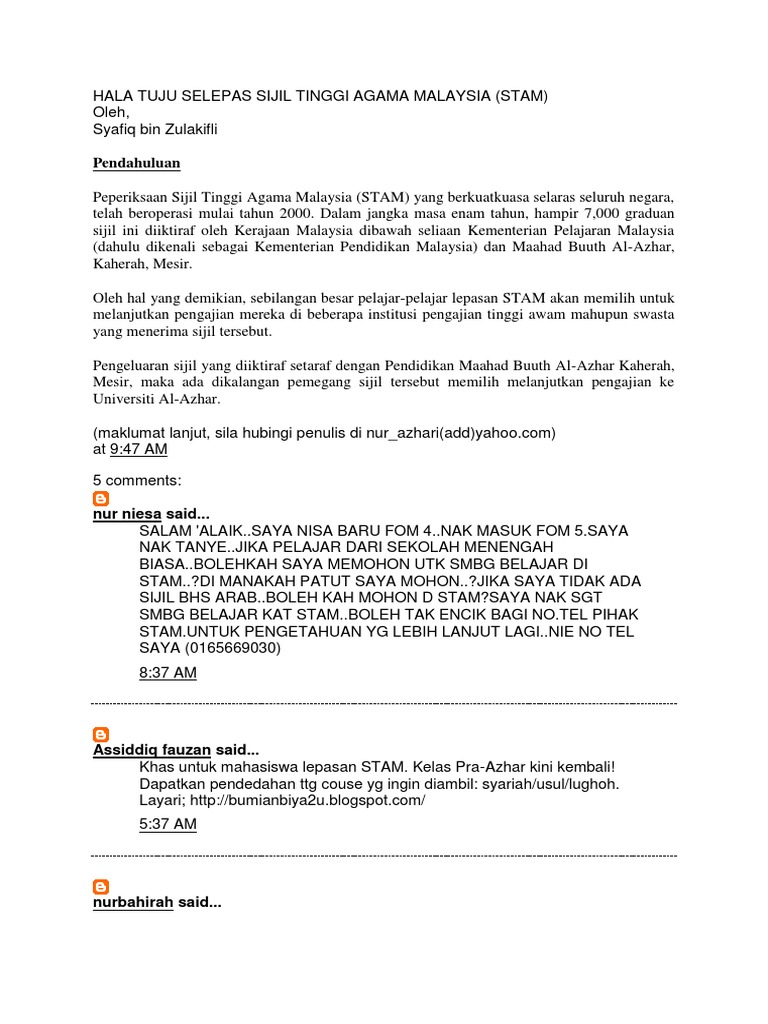 Assesment In Education Stam Sijil Tinggi Agama Malaysia from 1.bp.blogspot.com Check spelling or type a new query. Maybe you would like to learn more about one of these? We did not find results for: